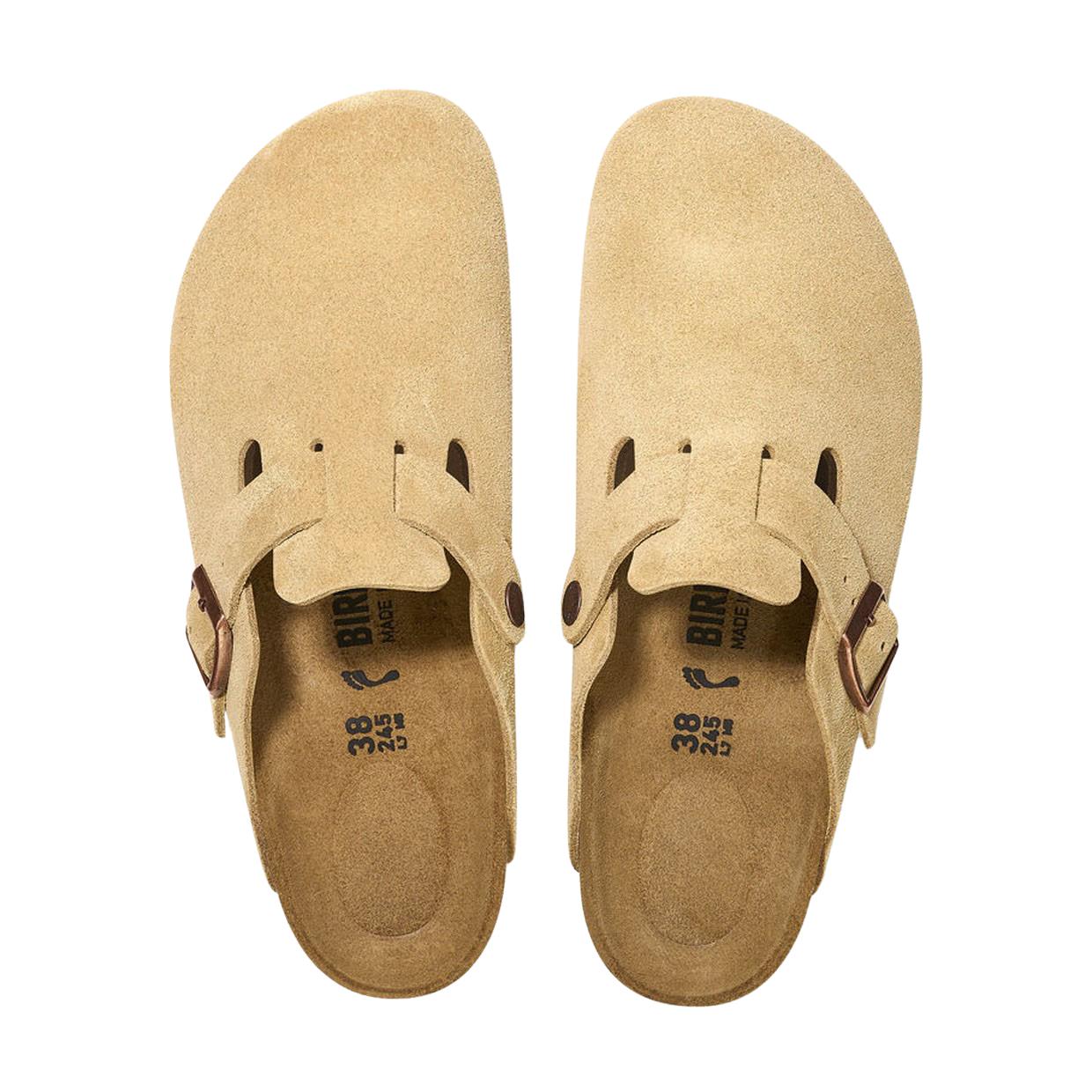 1026164 - Latte Cream I Sandali Birkenstock Boston sono uno dei modelli più in hype del brand Tedesco; presentano una tomaia in pelle scamosciata, morbida e piacevole al tatto. Il plantare Soft Footbed garantisce il massimo comfort grazie al cuscino in schiuma di lattice, mentre la soletta interna in pelle flessibile e traspirante si adatta al piede e consente di ottenere un giusto microclima anche con le temperature più elevate. La suola in E V A assicura un'ottima ammortizzazione e compensa le irregolarità del terreno. Dettagli prodotto: Made in Germany Tomaia in pelle scamosciata Plantare anatomico Soft Footbed Soletta interna in pelle Cinturino con fibbia di metallo regolabile Suola in E V A